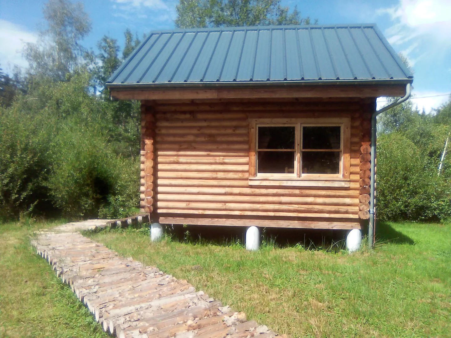 Prévu pour loger de 2 à 4 personnes, 27 m² sur 2 niveaux, ce chalet en rondins de 20 cm de diamètre a été importé directement du Tennessee. Les plans ont été réalisés sur mesure par notre fournisseur américain. Un confort cosy mais rustique, dépaysant, basique (électricité, chauffage, mais pas de raccordement en eau), qui donnera à votre séjour une authenticité américaine et un goût de retour aux sources. Accès aux sanitaires du buron, à 60 m.